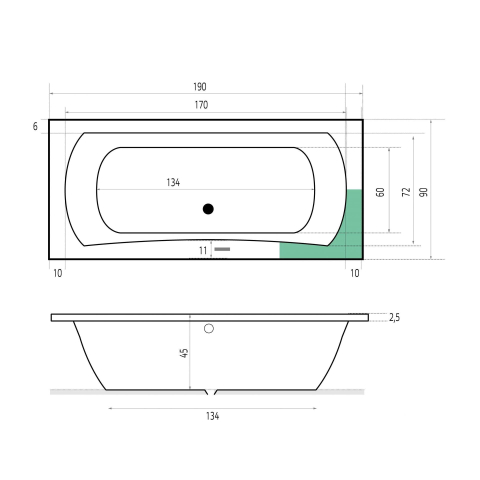 - Grande baignoire duo de 190x90x48 cm, idéale pour se baigner confortablement à deux.