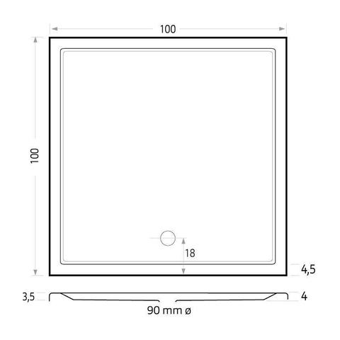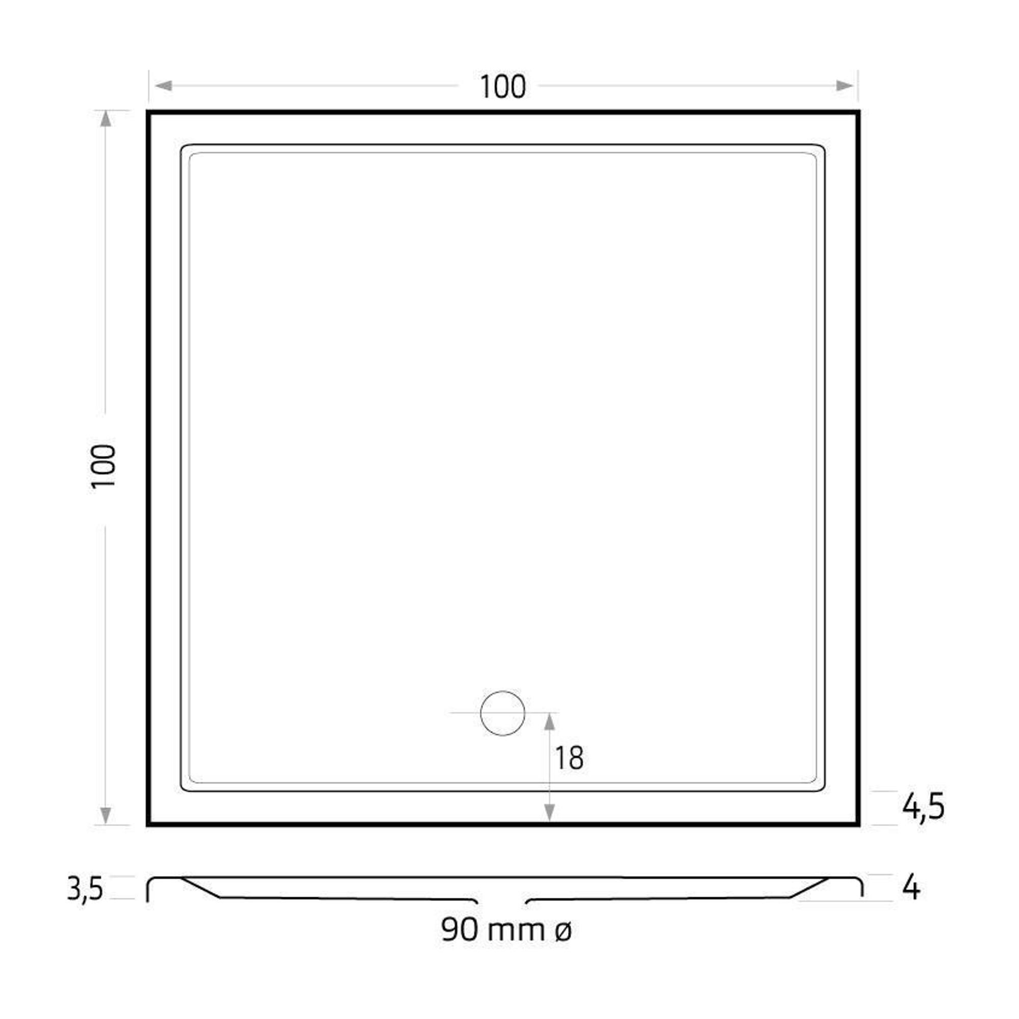 - Receveur de douche carré spacieux de 100x100 cm pour une liberté de mouvement supplémentaire pendant la douche.