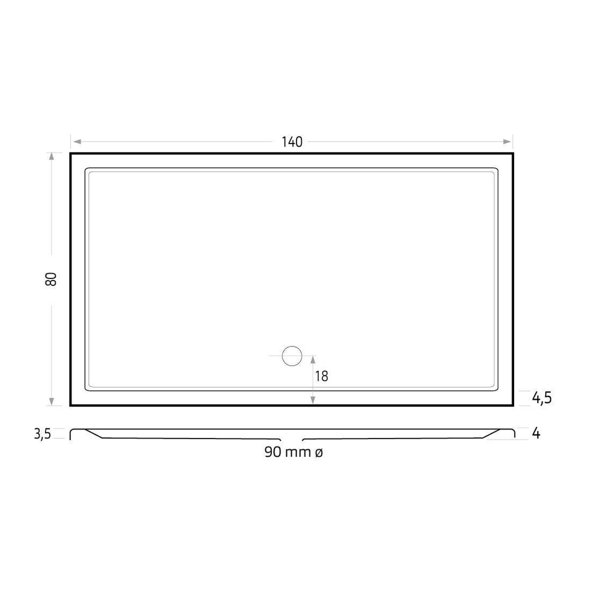 - Receveur de douche spacieux de 140x80 cm pour une douche confortable, même dans les salles de bains légèrement plus compactes.