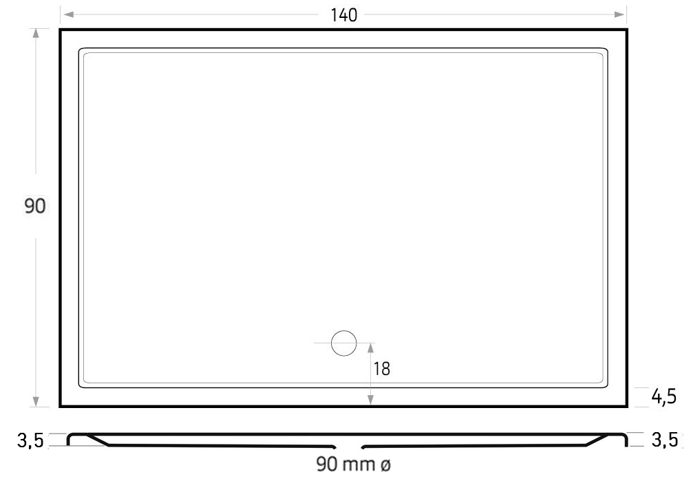 Xenz Mariana douchebak - 140x90x7 - Acryl - cement