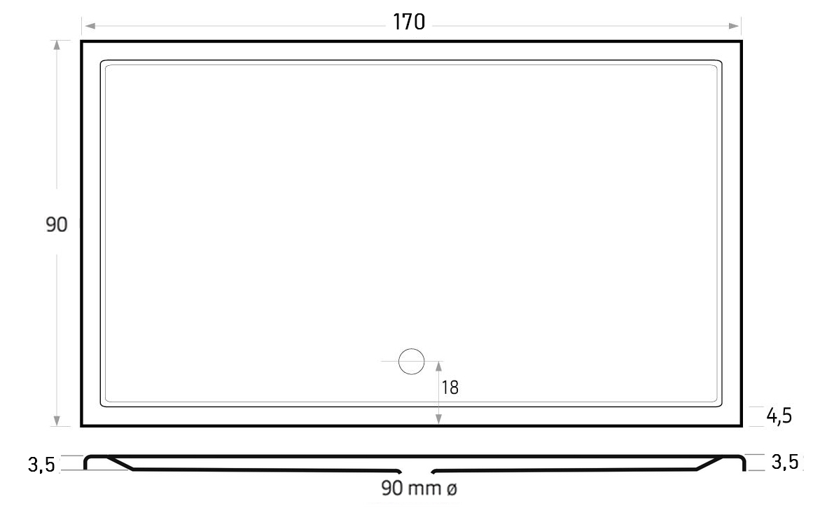 Xenz Mariana douchebak - 170x90x7 - Acryl - wit