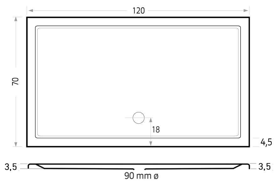 Xenz Mariana douchebak - 120x70x7 - Acryl - wit
