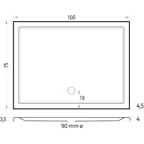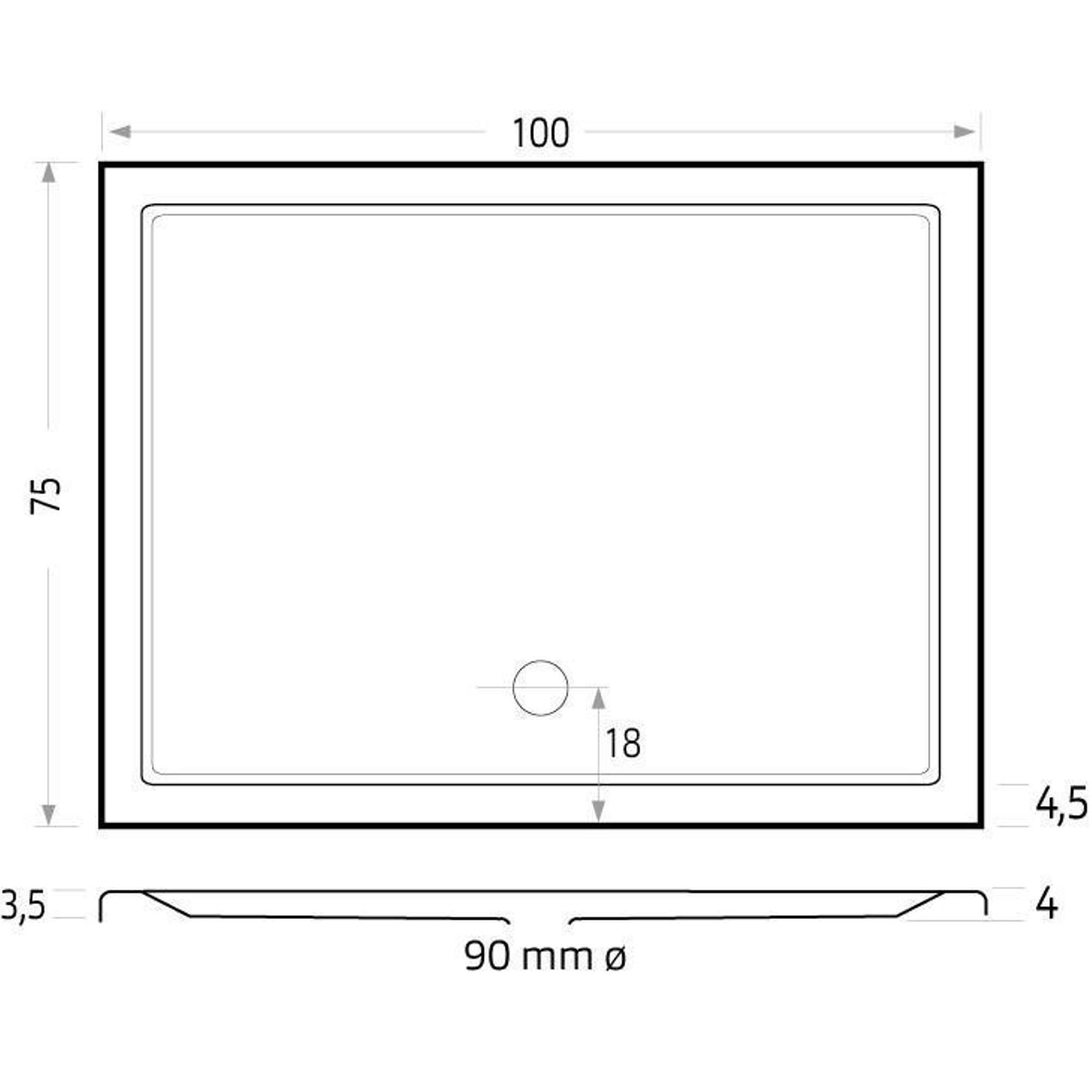 - Receveur de douche rectangulaire de 100x75 cm : idéal pour les salles de bains compactes à moyennes.