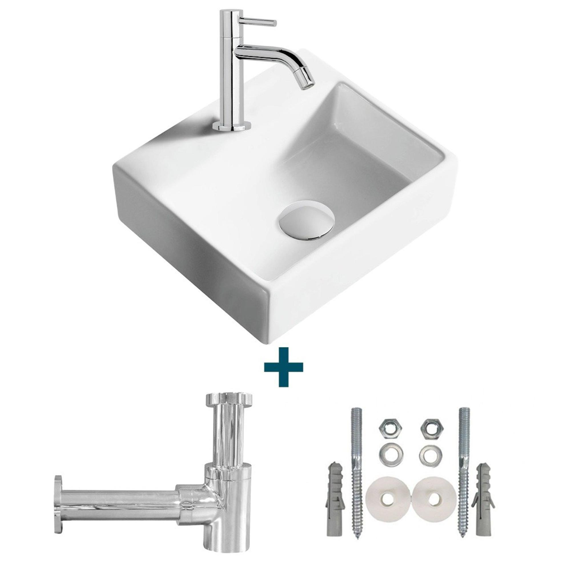 Nemo Spring Sun ensemble lave-mains 33,5x29,5cm sans trop-plein incluant robinet et siphon porcelaine blanc