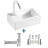 Nemo Spring Sula ensemble de lave-mains 37x23,5cm sans trop-plein incluant siphon et robinet d'eau froide porcelaine blanc