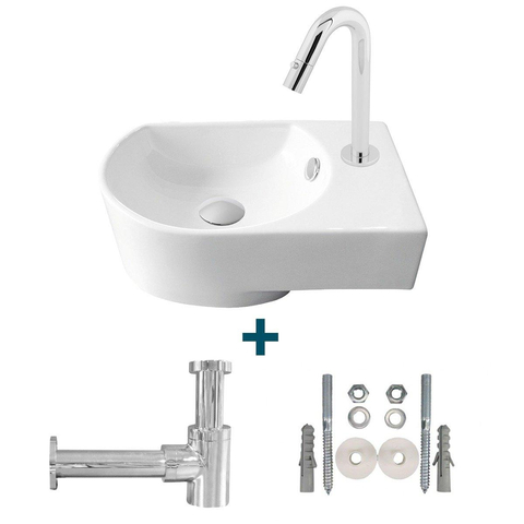 Go by Van Marcke Flexy Kit lave-mains droite 41x27x142cm comprenant robinet d'eau froide et siphon en porcelaine blanche