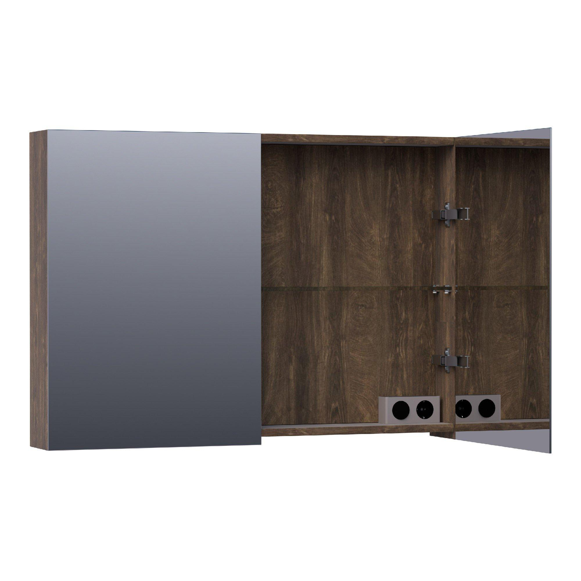BRAUER Plain Armoire de toilette - 100x70x15cm - 2 portes miroir à ouverture gauche/droite - MFC - écorce brûlée