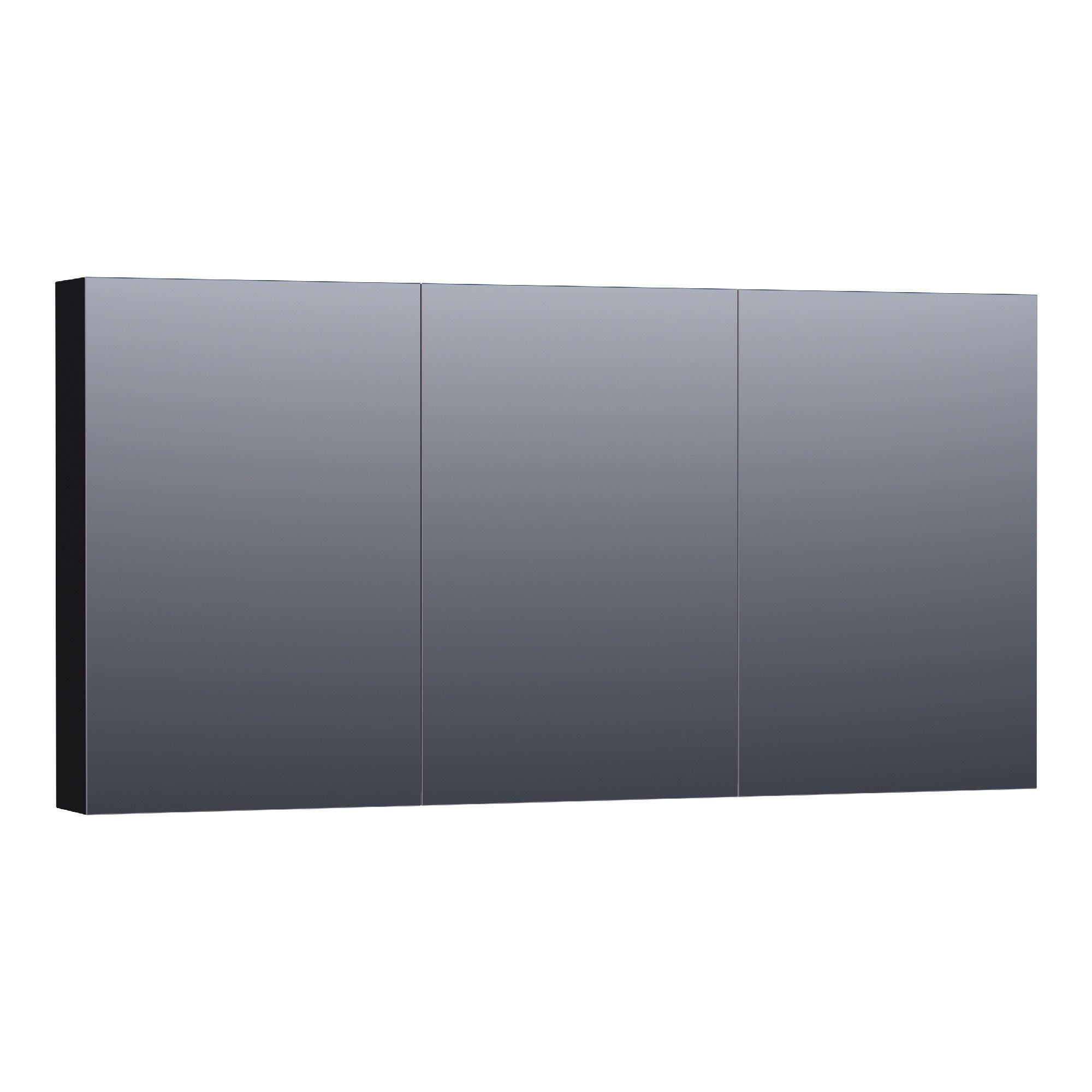 BRAUER Plain Armoire de toilette - 140x70x15cm - 3 portes miroir à ouverture gauche et droite MDF - noir mat