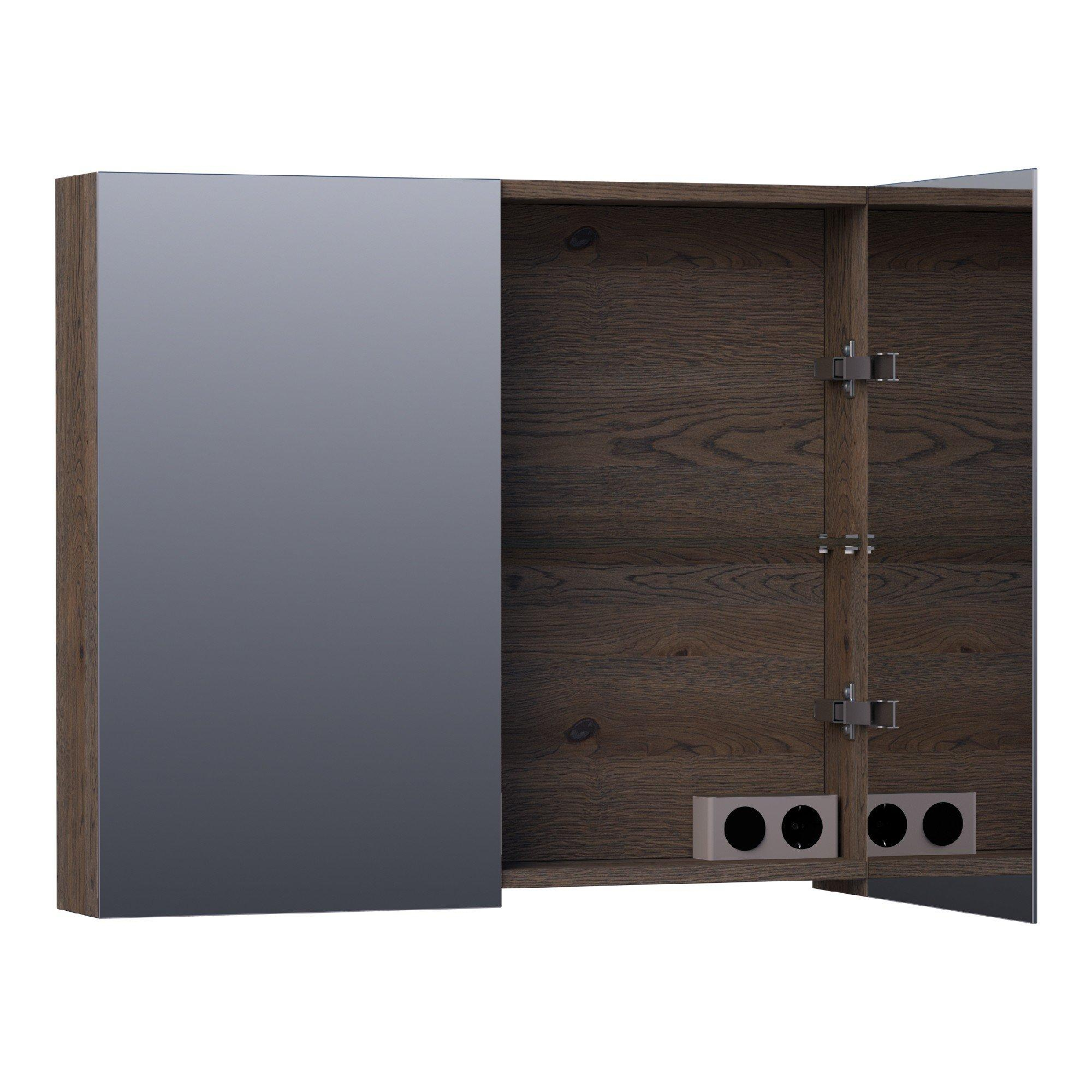 BRAUER Impress armoire de toilette - 80x70x15cm - sans éclairage - 2 portes miroir double face - chêne à lamelles noir