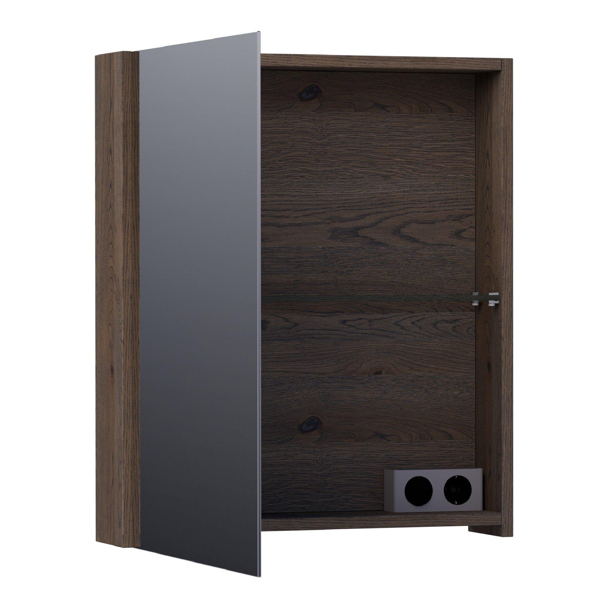 BRAUER Impress armoire de toilette - 60x70x15cm - sans éclairage - avec 1 porte miroir double face pivotant à gauche - chêne à lamelles noir