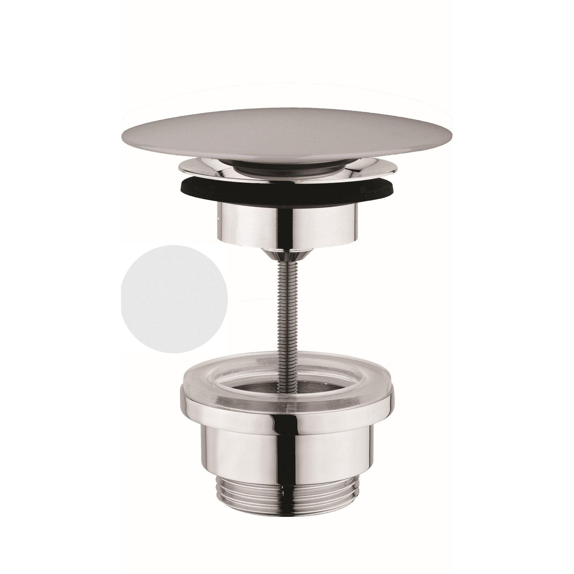 Avec ce clapet pop-up élégant, vous donnez en une fois à votre lavabo un aspect épuré et parfaitement fini. La finition blanche mate s’intègre parfaitement aux salles de bains modernes et minimalistes, mais se marie tout aussi bien avec un style doux, scandinave ou hôtel chic. Cette solution est idéale si vous souhaitez remplacer votre ancien bouchon, installer une nouvelle vasque ou simplement créer un ensemble calme et homogène sans accents brillants qui jurent avec le reste. Grâce au système de clic pratique, la bonde s’ouvre et se ferme facilement, ce qui est confortable au quotidien, par exemple pour remplir le lavabo ou pendant votre routine du soir. Vous optez ainsi non seulement pour un joli détail, mais aussi pour la fiabilité et la facilité d’utilisation dans votre salle de bains.