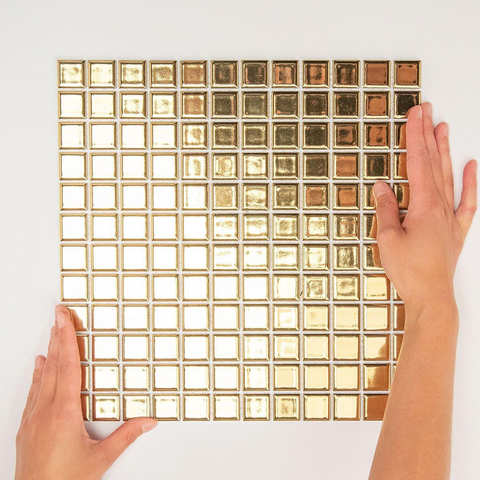 The Mosaic Factory Barcelona Carrelage mosaïque carré 30x30cm pour le mur et pour l'intérieur et l'extérieur porcelaine résistant au gel Or métallique
