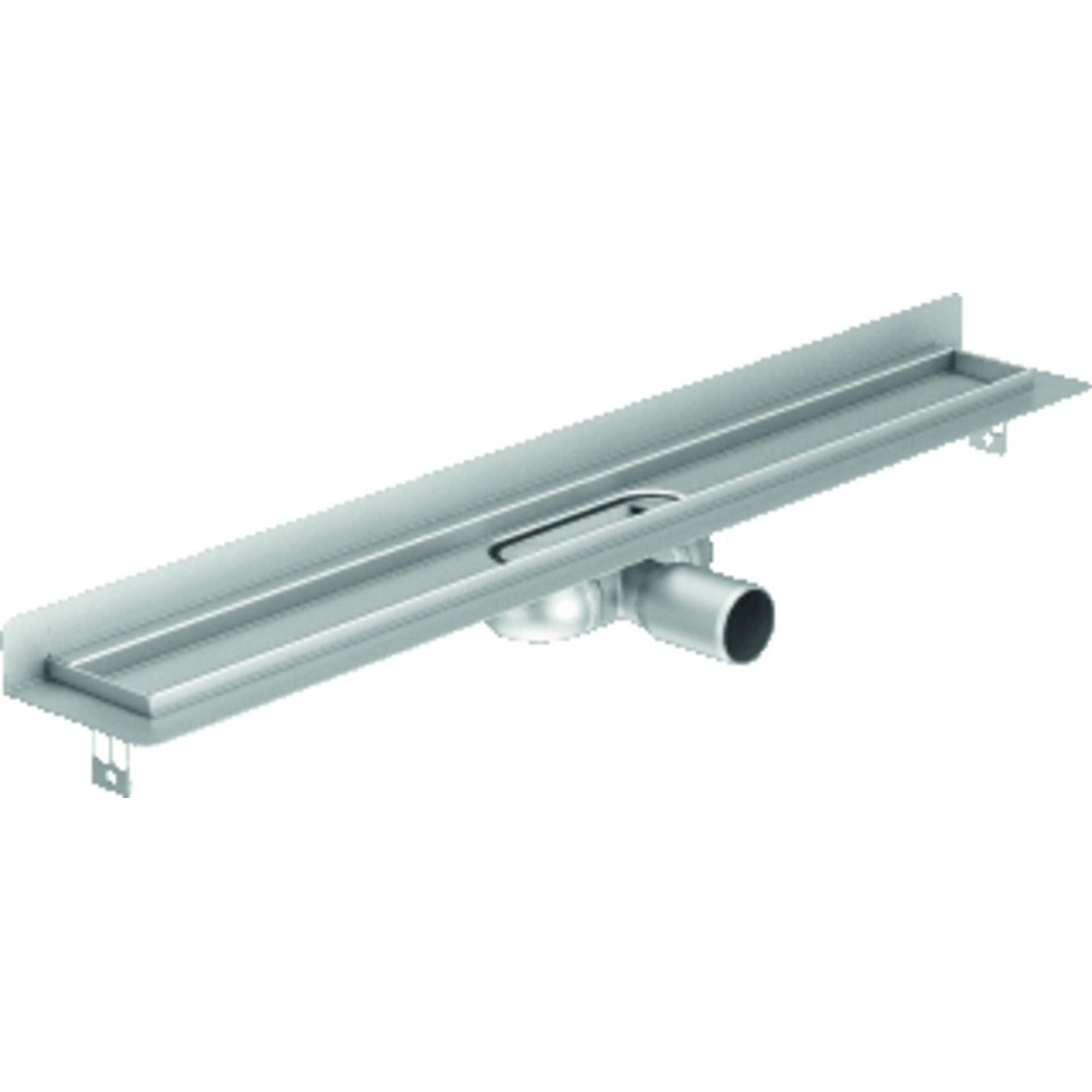 Aco ShowerDrain C caniveau de douche inox avec rebord mural sans grille, 70mm de large, garde d'odeur 25mm 685mm profondeur d'encastrement 65mm avec sortie latérale