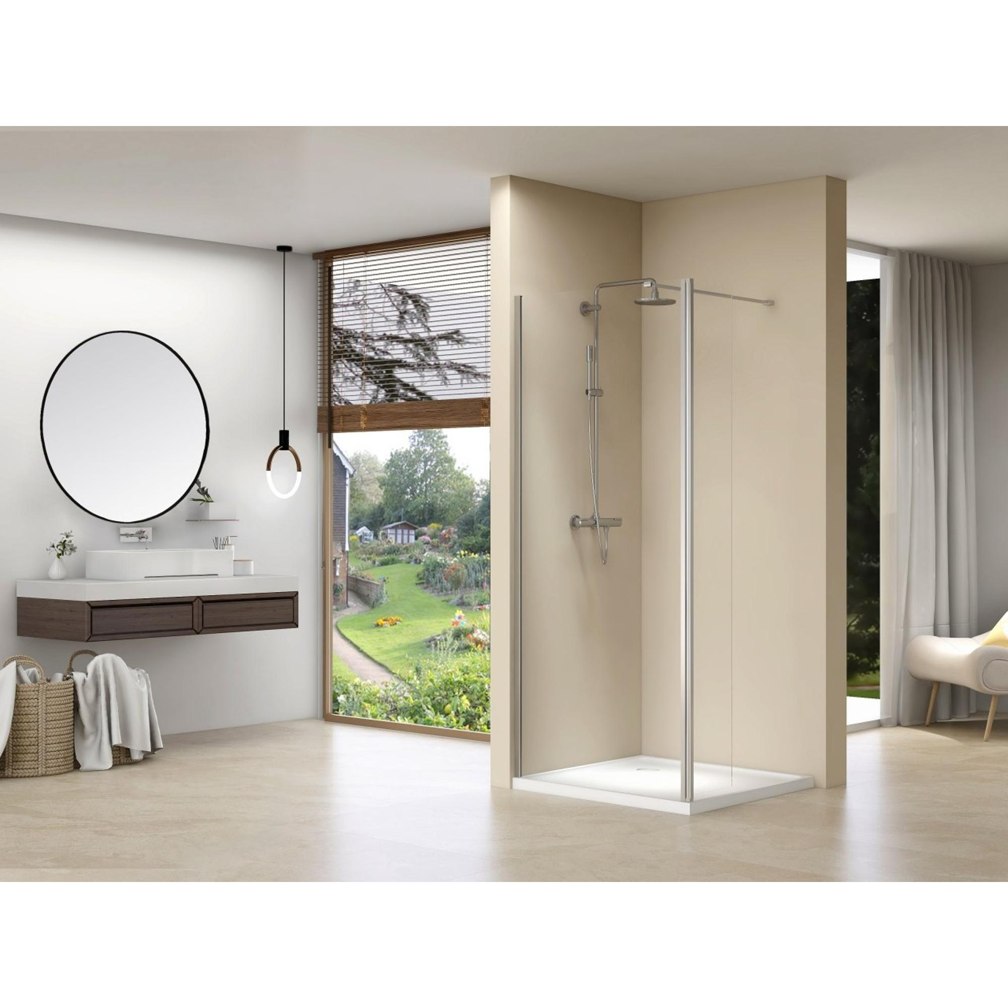 Van Rijn Products ST01 Paroi fixe - 120x200cm - verre transparent - paroi d’angle pivotante - gauche et droite - barre de stabilisation
