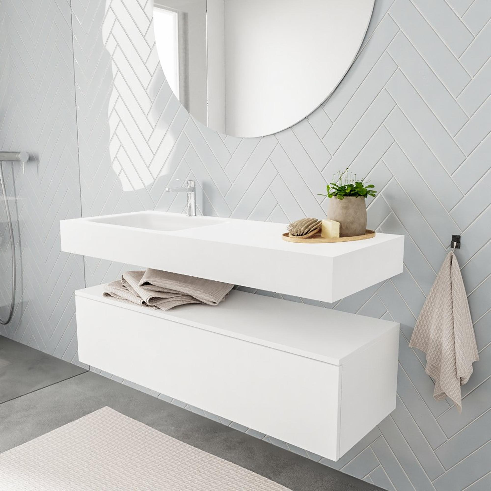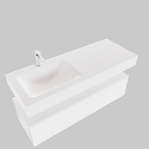 MONDIAZ ALAN 120cm - meuble bas - 1 tiroir - lavabo suspendu - vasque à gauche - 1 trou de robinet - talc