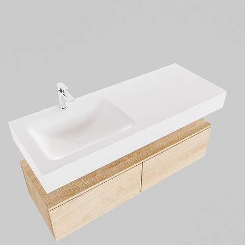 MONDIAZ ALAN 120cm - caisson bas - chêne blanchi - 2 tiroirs - lavabo suspendu - cuve à gauche - 1 trou de robinet - talc