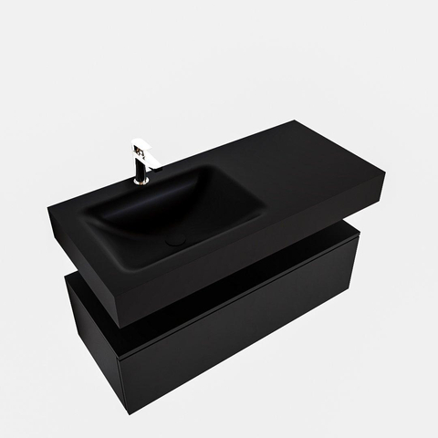 MONDIAZ ALAN 100cm - meuble bas - 1 tiroir - lavabo suspendu - vasque à gauche - 1 trou de robinet - urban