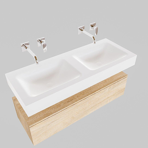 MONDIAZ ALAN 120cm - meuble bas - chêne blanchi - 1 tiroir - lavabo suspendu - 2 bassins - 0 trous de robinet - talc