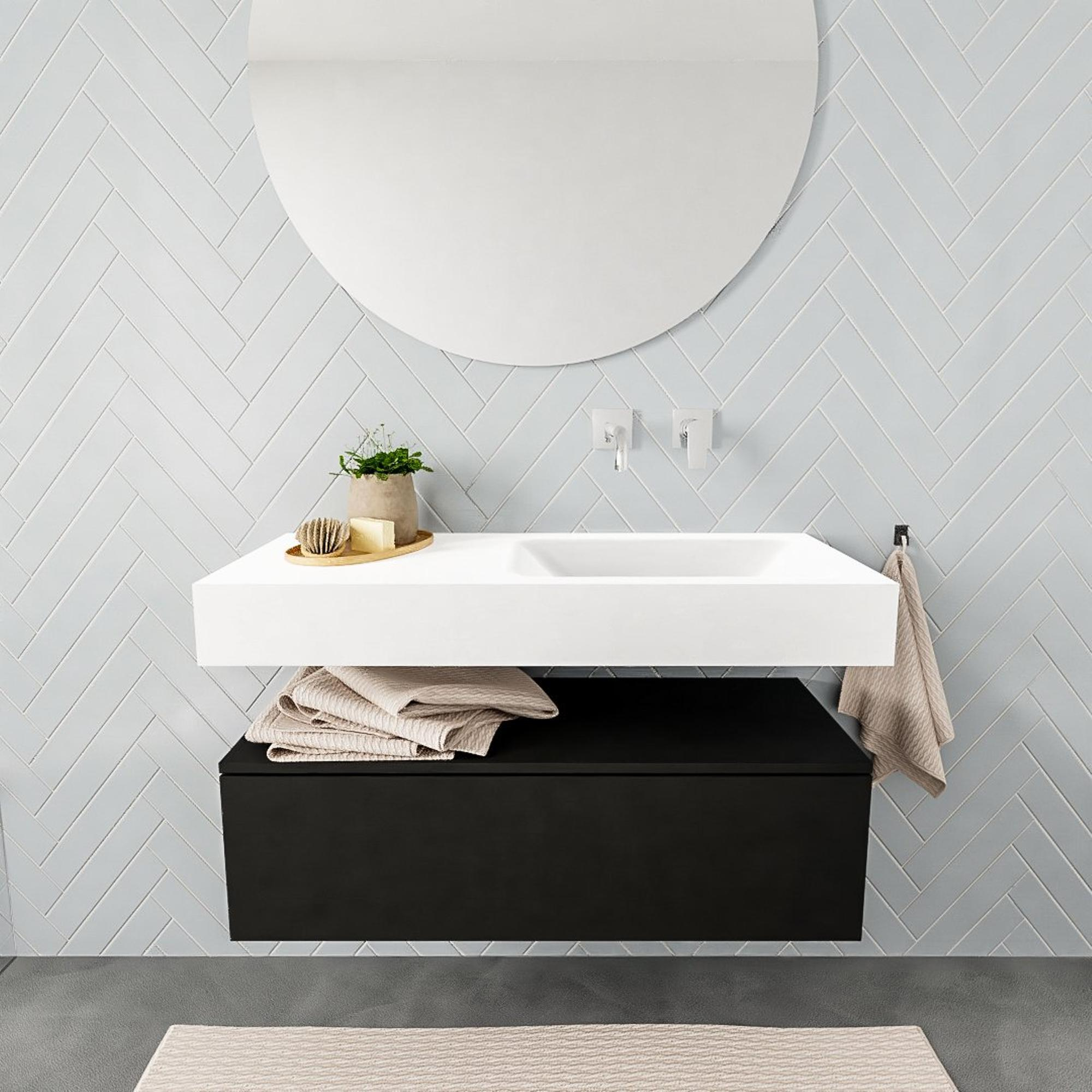 MONDIAZ ALAN 100cm - meuble bas - urban - 1 tiroir - lavabo suspendu - cuve à droite - 0 trous de robinet - talc