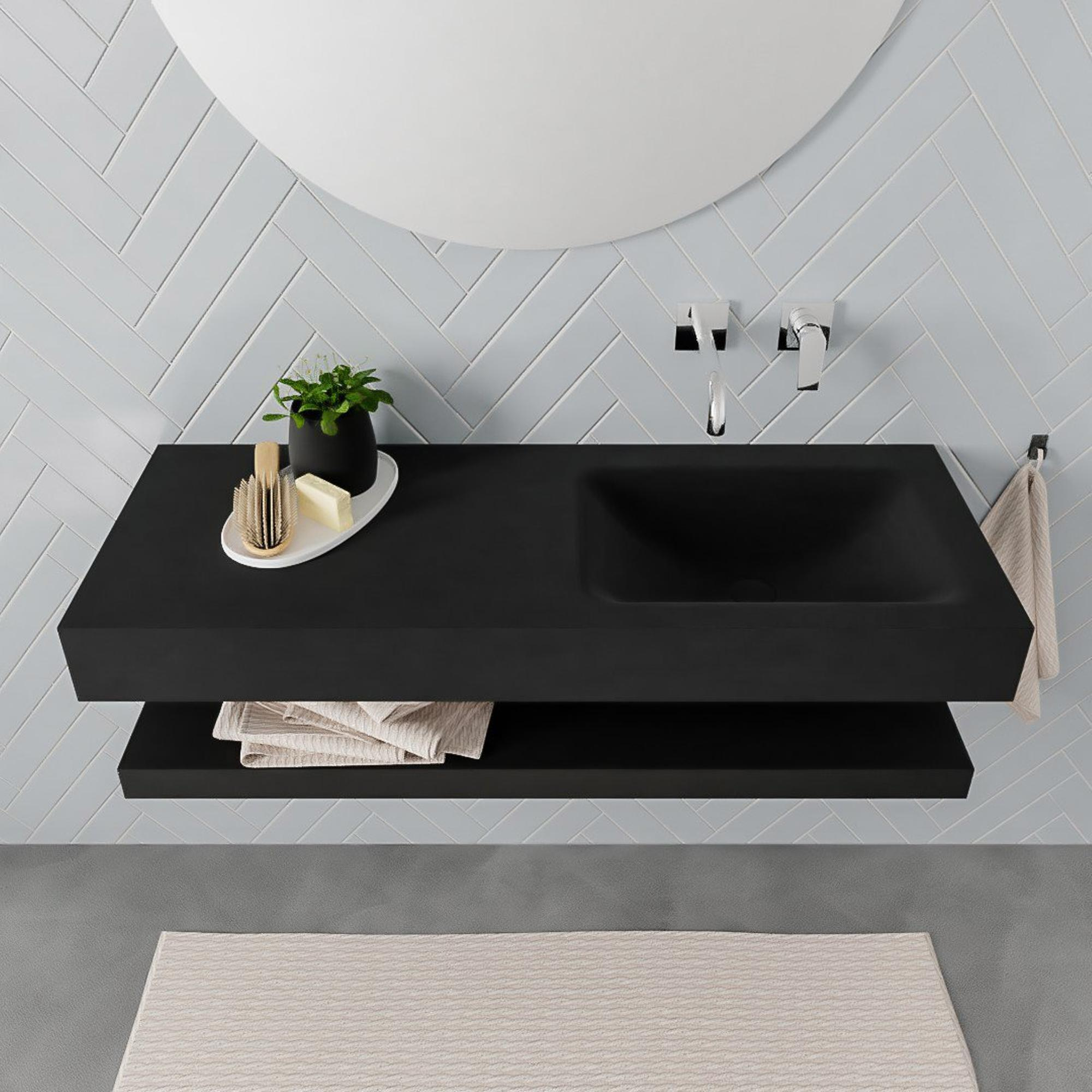 MONDIAZ ALAN 120cm - Ensemble meuble de salle de bains - solid surface - tablette avec lavabo suspendu - vasque à droite - 0 trous de robinet - urban