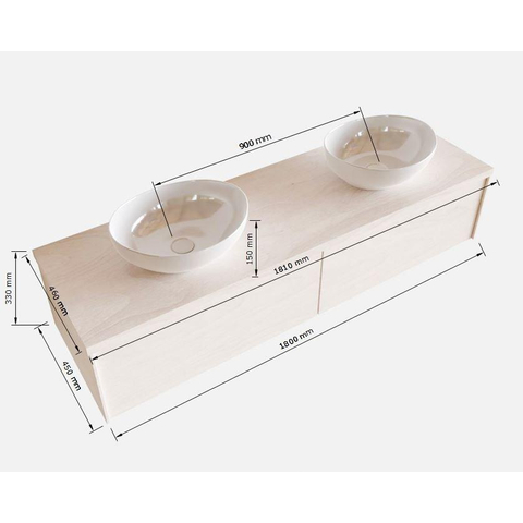 MONDIAZ LUSH Ensemble de meuble - 180cm - 2 tiroirs - lavabo BARCO - 2 vasques - 2 trous de robinet - chêne blanchi