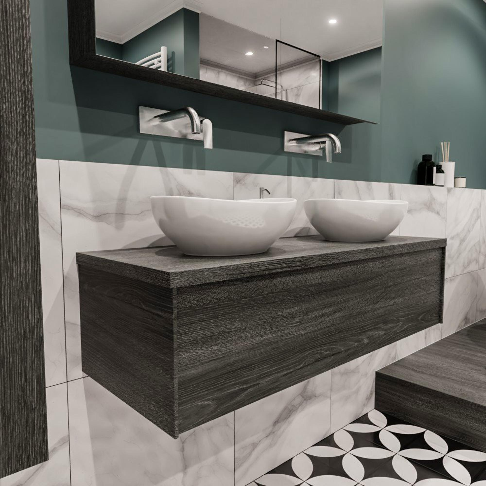 ENSEMBLE DE MEUBLE MONDIAZ LUSH - 120cm - 1 tiroir - lavabo BARCO - 2 lavabos - 0 trous de robinet - anthracite