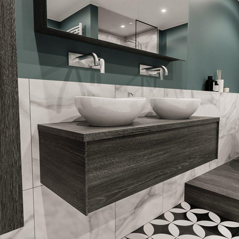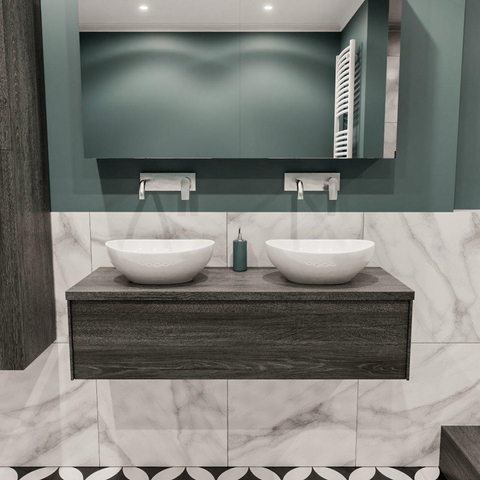 MONDIAZ LUSH Ensemble de meuble - 120cm - 1 tiroir - lavabo BARCO - 2 lavabos - 0 trous de robinet - anthracite