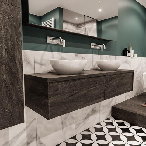 Avec deux tiroirs spacieux, cet ensemble de meuble salle de bain offre suffisamment d'espace de rangement pour tous vos articles de salle de bain, des serviettes aux produits de toilette. La lavabo BARCO avec deux lavabos permet à deux personnes d'utiliser simultanément le lavabo, ce qui est idéal pour les matins chargés. De plus, il n'y a pas de trous de robinet, vous offrant la liberté de placer le robinet comme bon vous semble.