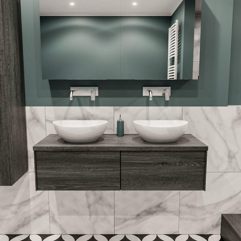 Avec une largeur de 120cm et deux tiroirs, cet ensemble de meuble de salle de bain offre suffisamment d'espace pour organiser tous vos articles de salle de bain. Les deux lavabos garantissent qu'il y a suffisamment d'espace pour plusieurs utilisateurs en même temps, ce qui le rend parfait pour un ménage occupé ou une salle de bain partagée.