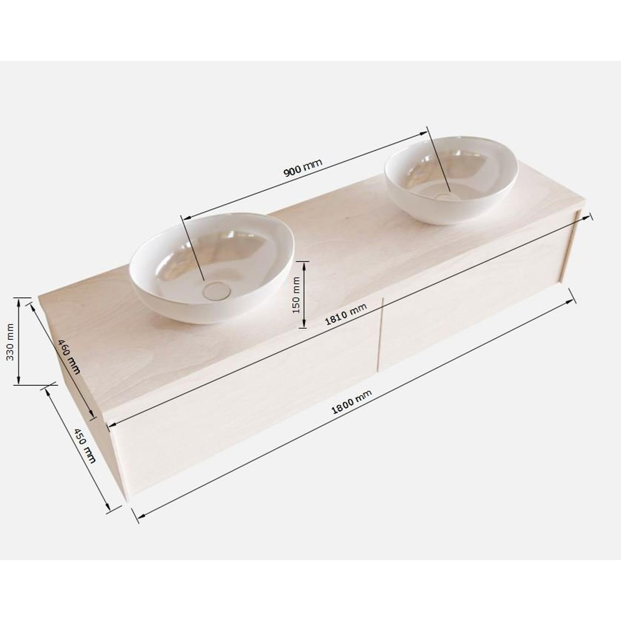 MONDIAZ LUSH Ensemble de meuble - 180cm - 2 tiroirs - lavabo BARCO - 2 lavabos - 2 trous de robinet - panneau de construction
