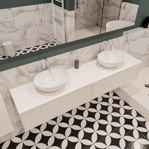 ENSEMBLE DE MEUBLE MONDIAZ LUSH - 180 cm - 2 tiroirs - lavabo BARCO - 2 lavabos - 2 trous de robinet - sous-couche