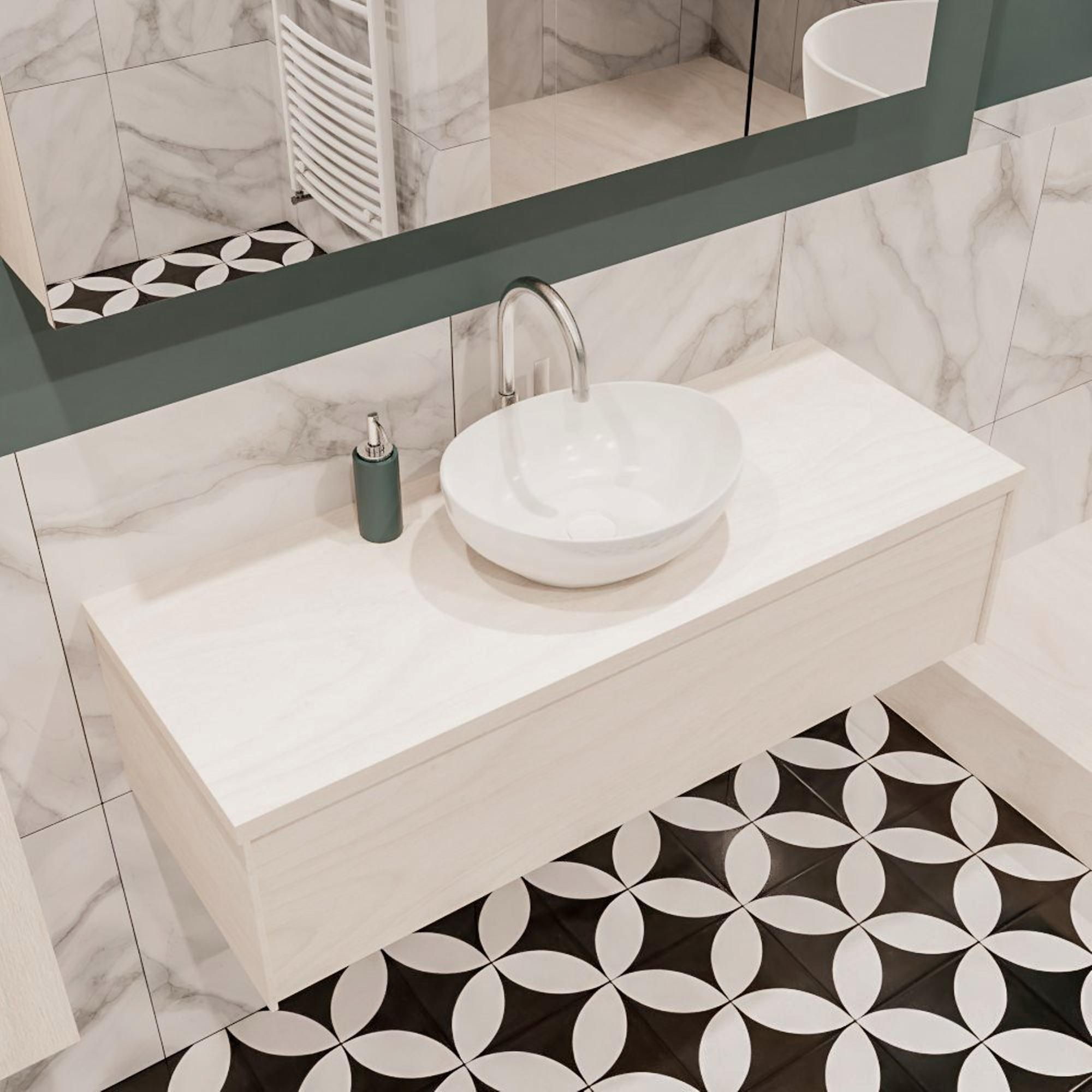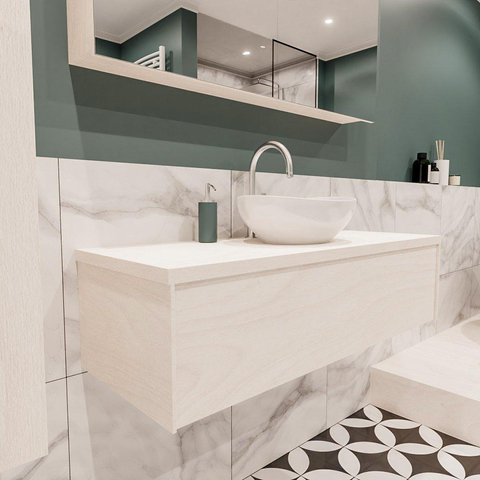 MONDIAZ LUSH Ensemble de meuble - 120cm - 1 tiroir - lavabo BARCO - vasque au centre - 1 trou de robinet - panneau de sous-couche