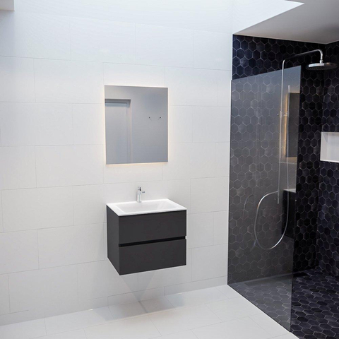 MONDIAZ VICA Ensemble de meuble - 60cm - 2 tiroirs - lavabo Cloud milieu - 1 trou de robinet - solid surface gris foncé