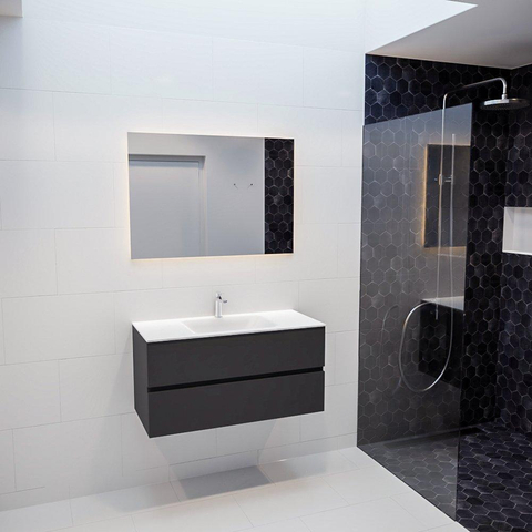 MONDIAZ VICA Ensemble de meuble - 100cm - 2 tiroirs - lavabo Cloud milieu - 1 trou de robinet - solid surface gris foncé