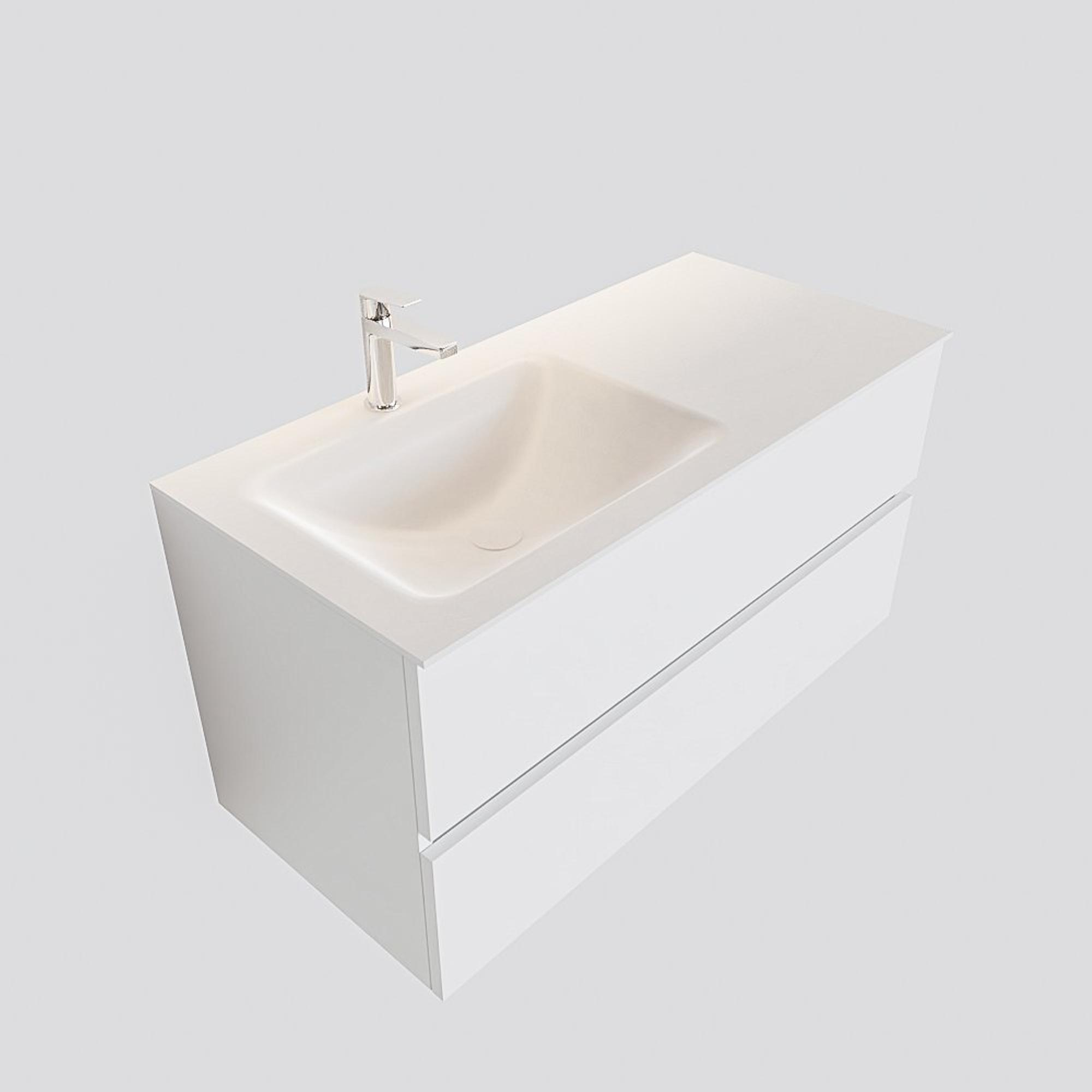 MONDIAZ VICA Ensemble de meuble - 100cm - 2 tiroirs - lavabo Cloud gauche - 1 trou de robinet - solid surface talc