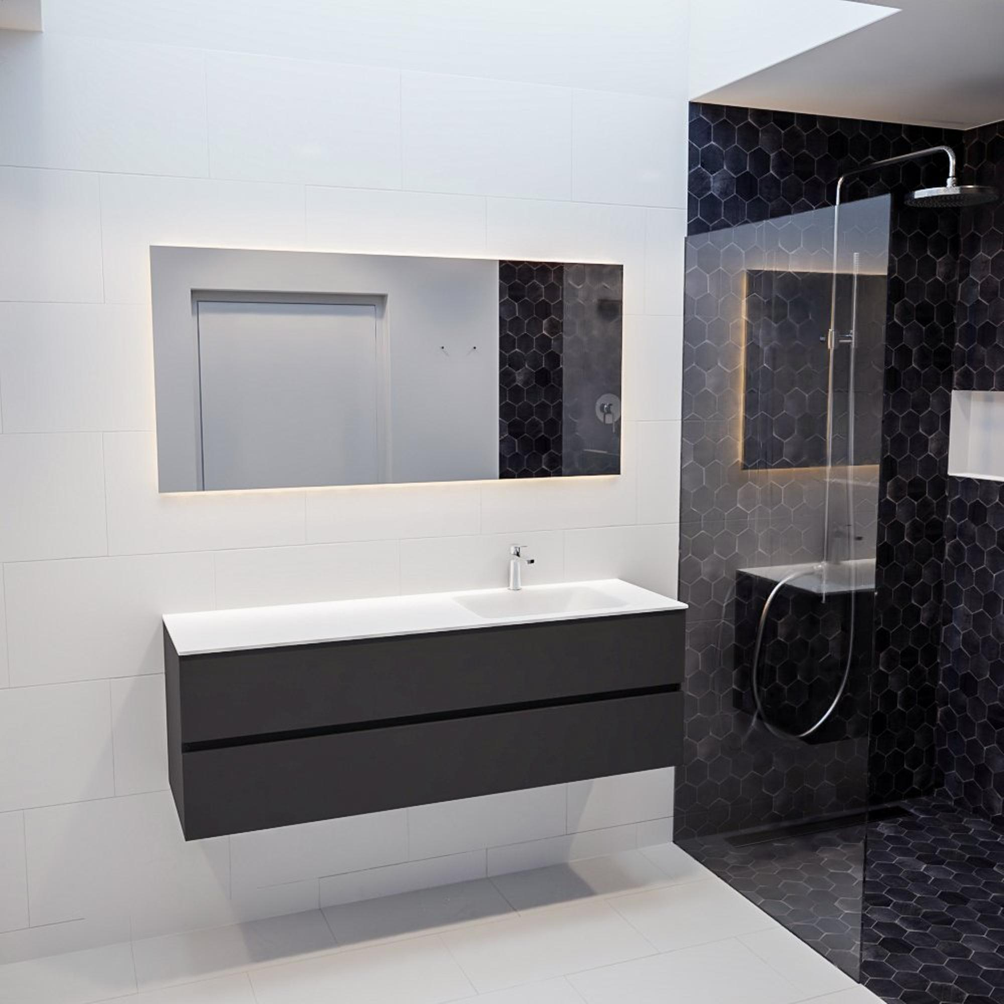 MONDIAZ VICA Ensemble de meuble - 150cm - 2 tiroirs - lavabo Cloud à droite - 1 trou de robinet - solid surface gris foncé