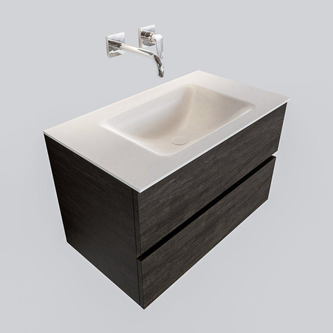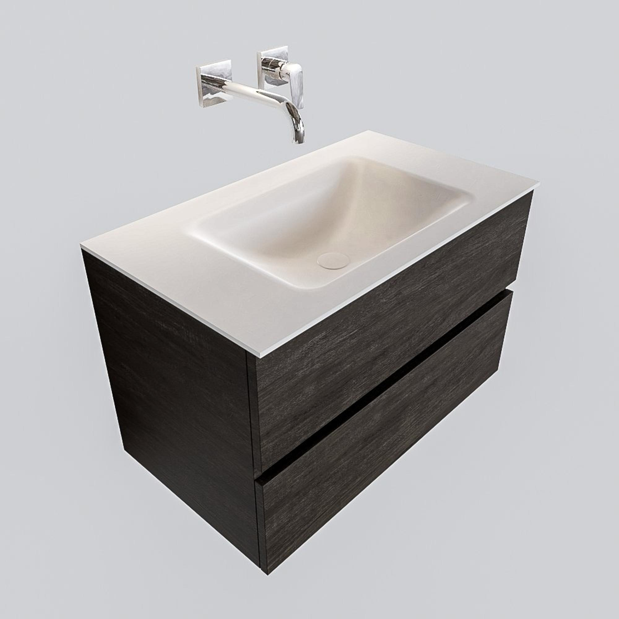 MONDIAZ VICA Ensemble de meuble de salle de bain - 80cm - 2 tiroirs - lavabo Cloud milieu - 0 trou de robinet - solid surface marron foncé