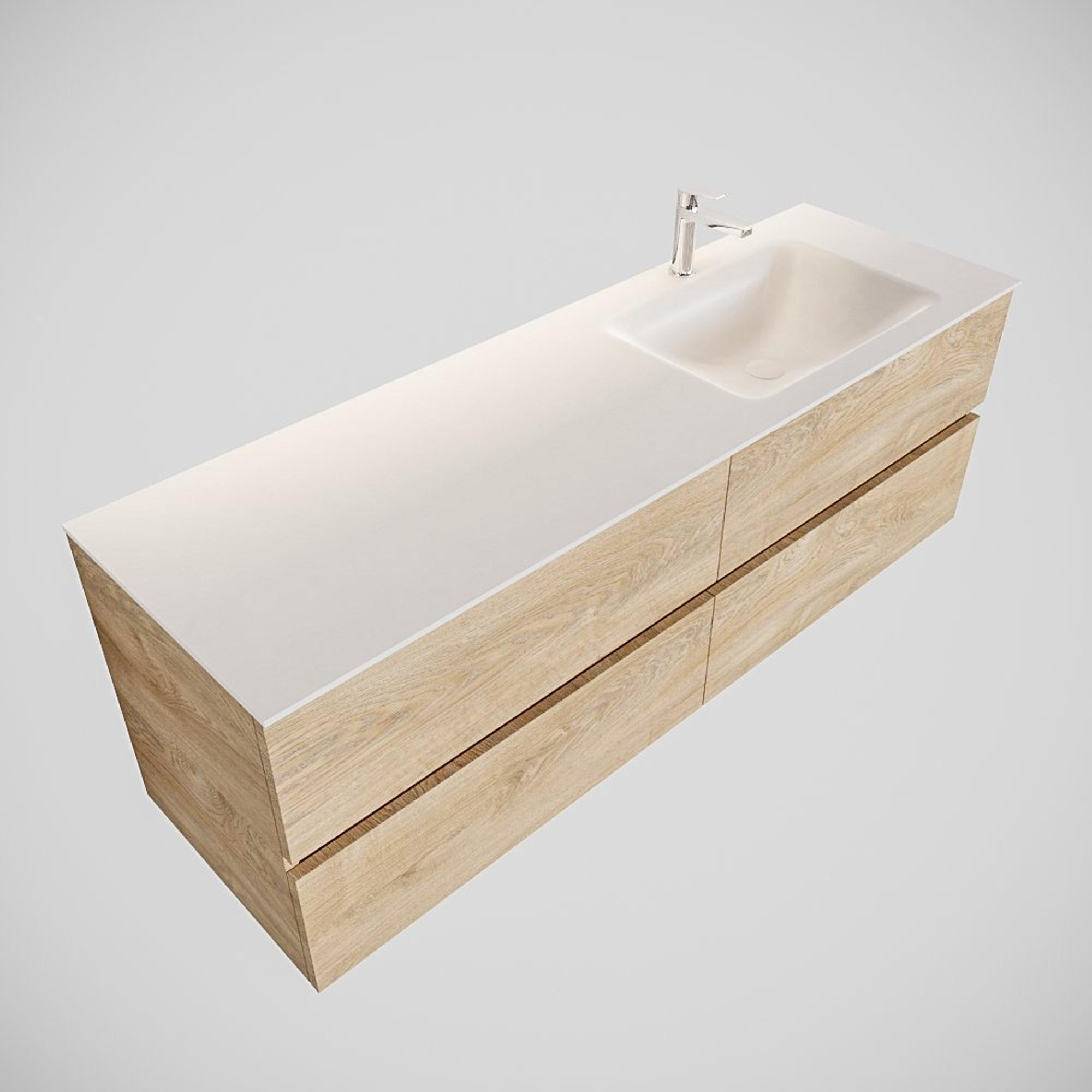 MONDIAZ VICA Ensemble de meuble salle de bain - 150cm - 4 tiroirs - lavabo Cloud à droite - 1 trou de robinet - solid surface chêne blanchi