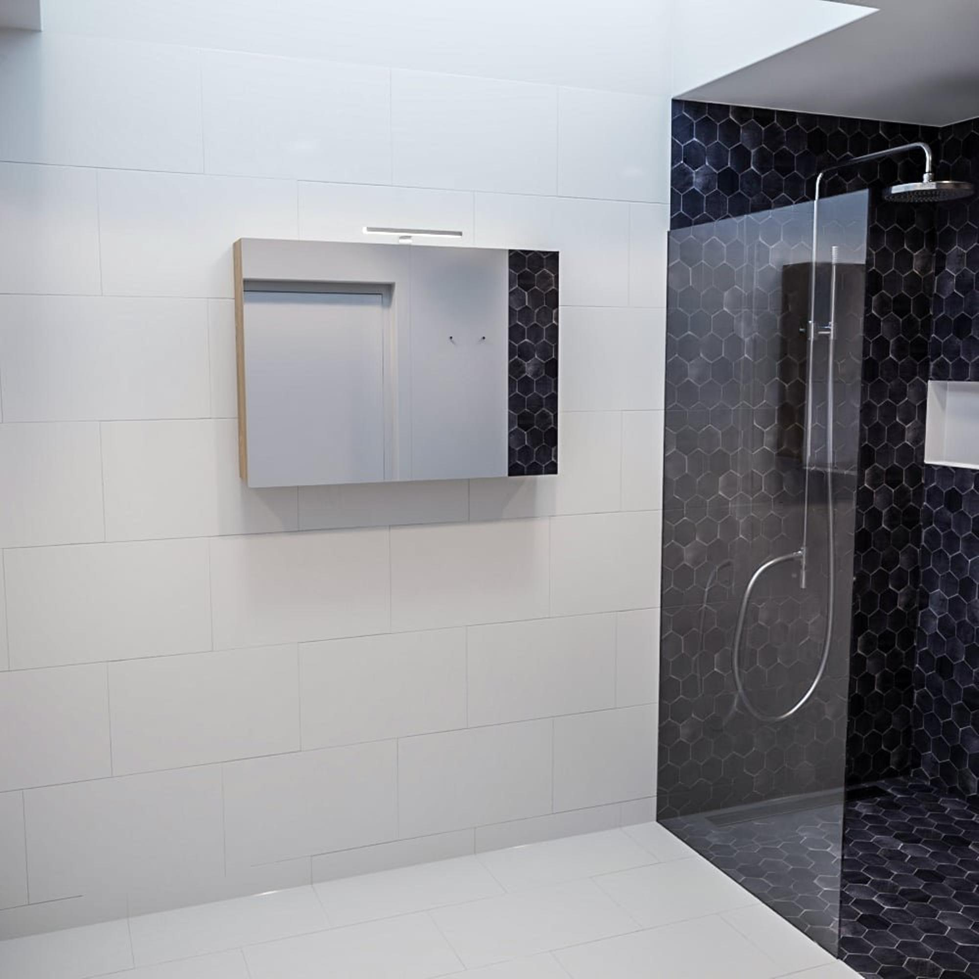 - Armoire de toilette sans éclairage intégré : liberté de choisir vous-même un éclairage de miroir adapté