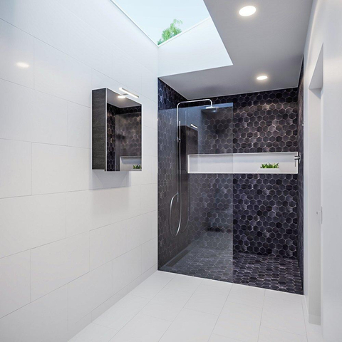 - Forme rectangulaire épurée qui se combine harmonieusement avec les meubles de salle de bains et styles de carrelage contemporains.