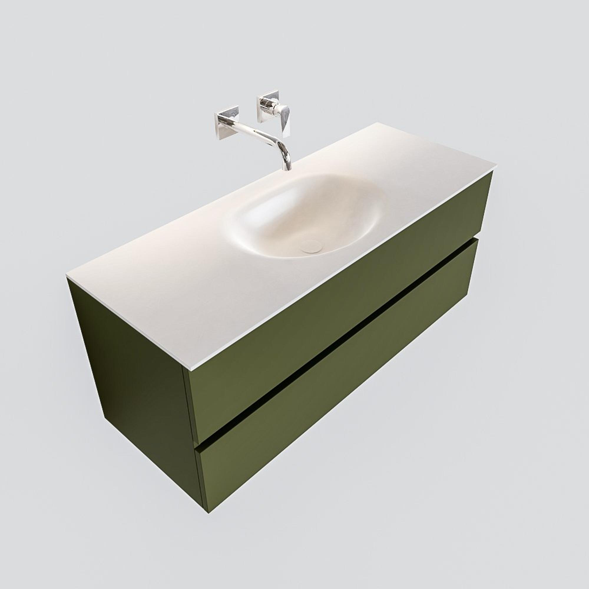 MONDIAZ VICA Ensemble de meuble salle de bain - 120cm - 2 tiroirs - lavabo Moon central - 0 trous de robinet - solid surface army