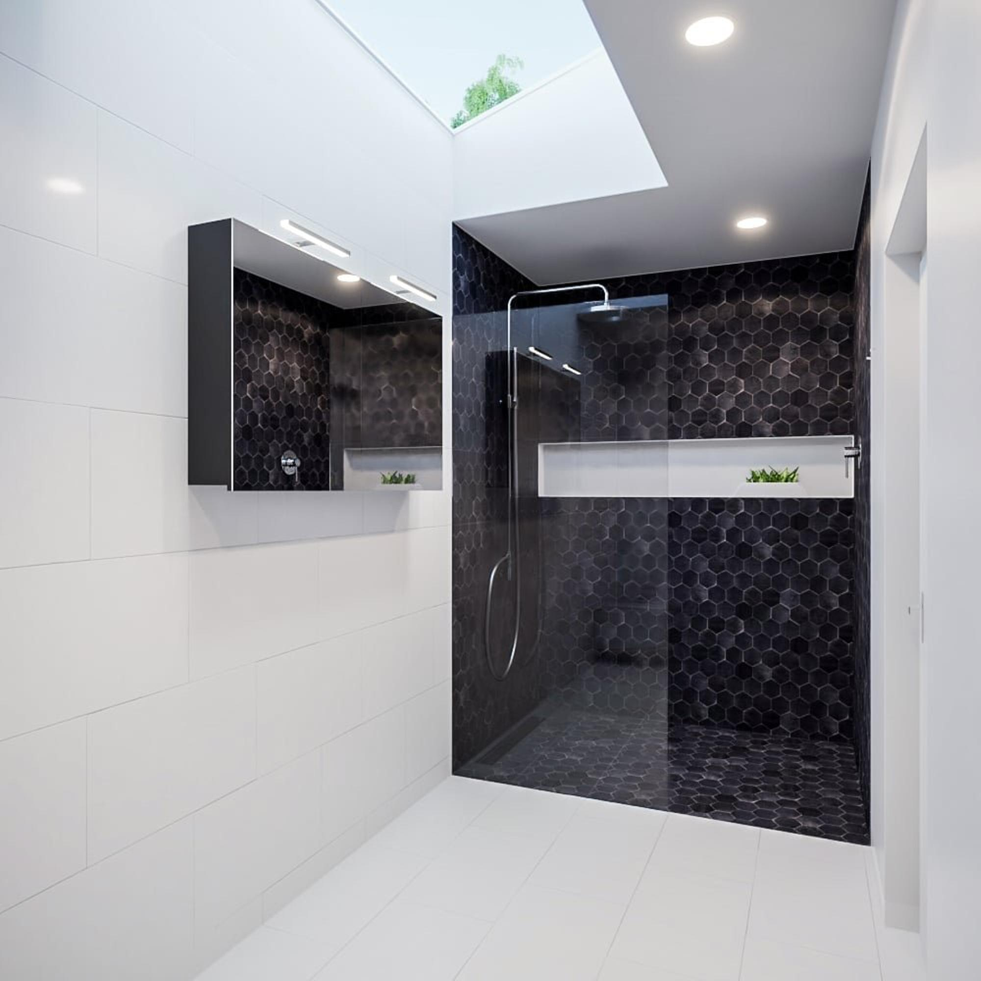 - Couleur moderne dark grey, mate, pour un style de salle de bains calme et contemporain