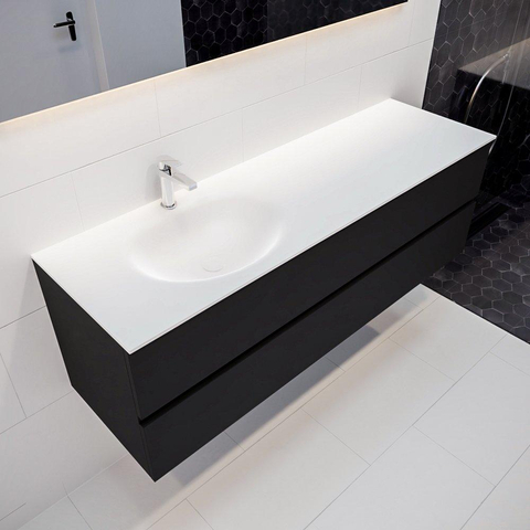 MONDIAZ VICA Ensemble de meuble salle de bain - 150cm - 2 tiroirs - lavabo Moon gauche - 1 trou de robinet - solid surface urban