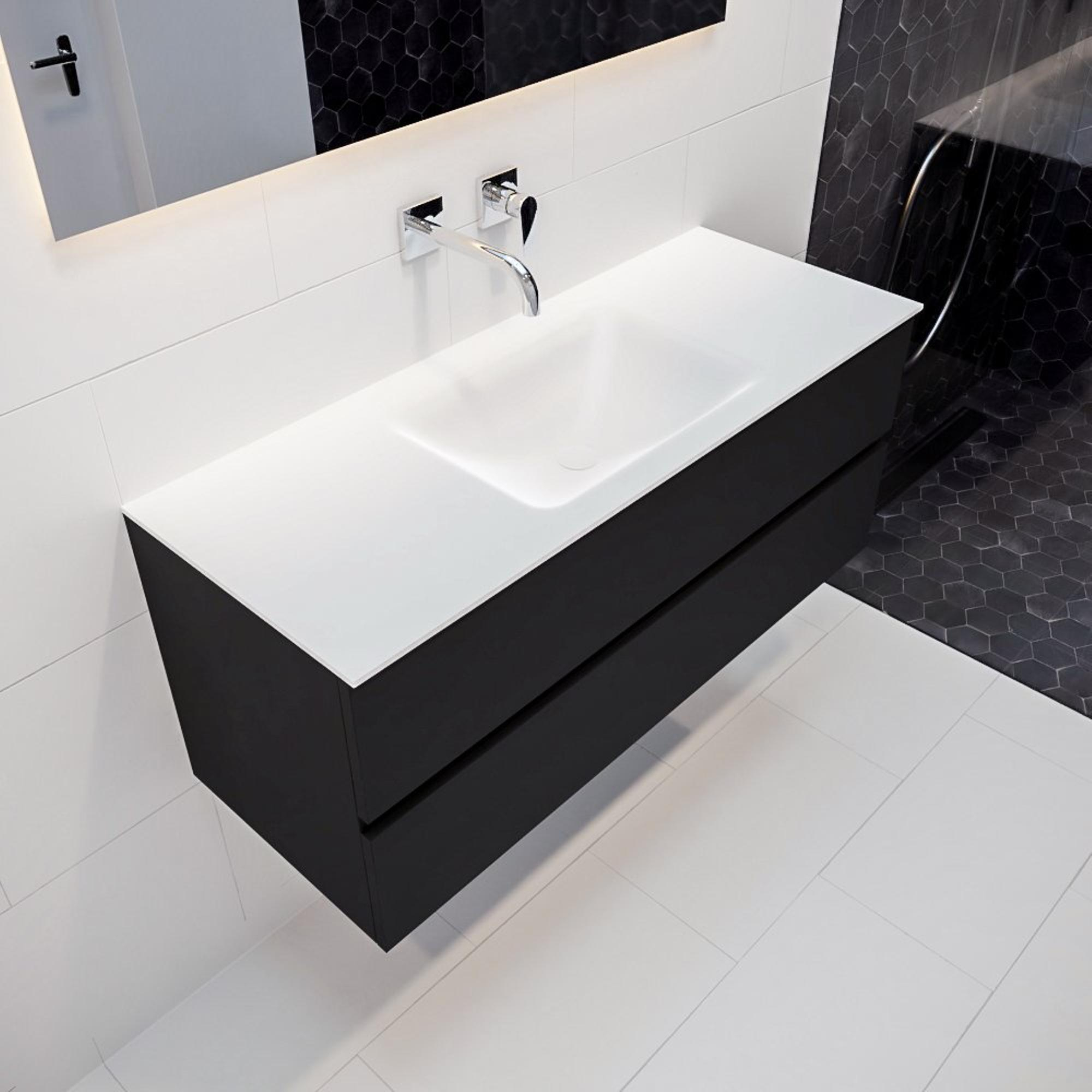 ENSEMBLE DE MEUBLE MONDIAZ VICA - 120cm - 2 tiroirs - lavabo Cloud central - 0 trous de robinet - solid surface urban