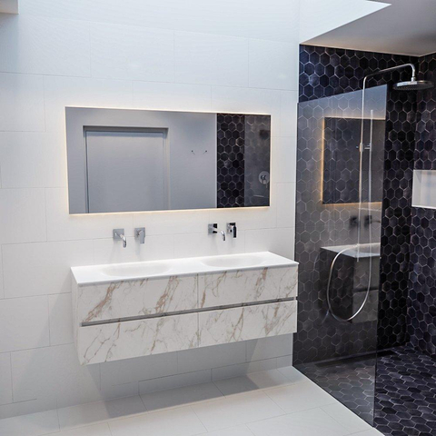 Les surfaces solides en marbre carrara dégagent luxe et raffinement, faisant de cet ensemble de meuble salle de bain un véritable accroche-regard. Les matériaux soigneusement sélectionnés et la finition de haute qualité garantissent un meuble durable et élégant qui durera des années. Avec cet ensemble de meuble salle de bain, vous ajoutez une touche de luxe à votre routine quotidienne.