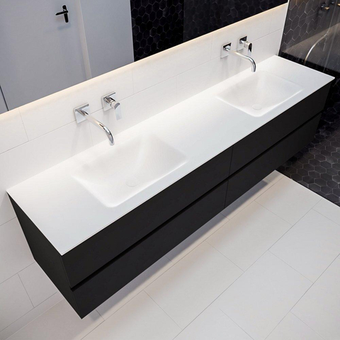 MONDIAZ VICA Ensemble de meuble - 200cm - 4 tiroirs - lavabo Cloud double - 0 trou de robinet - solid surface urban