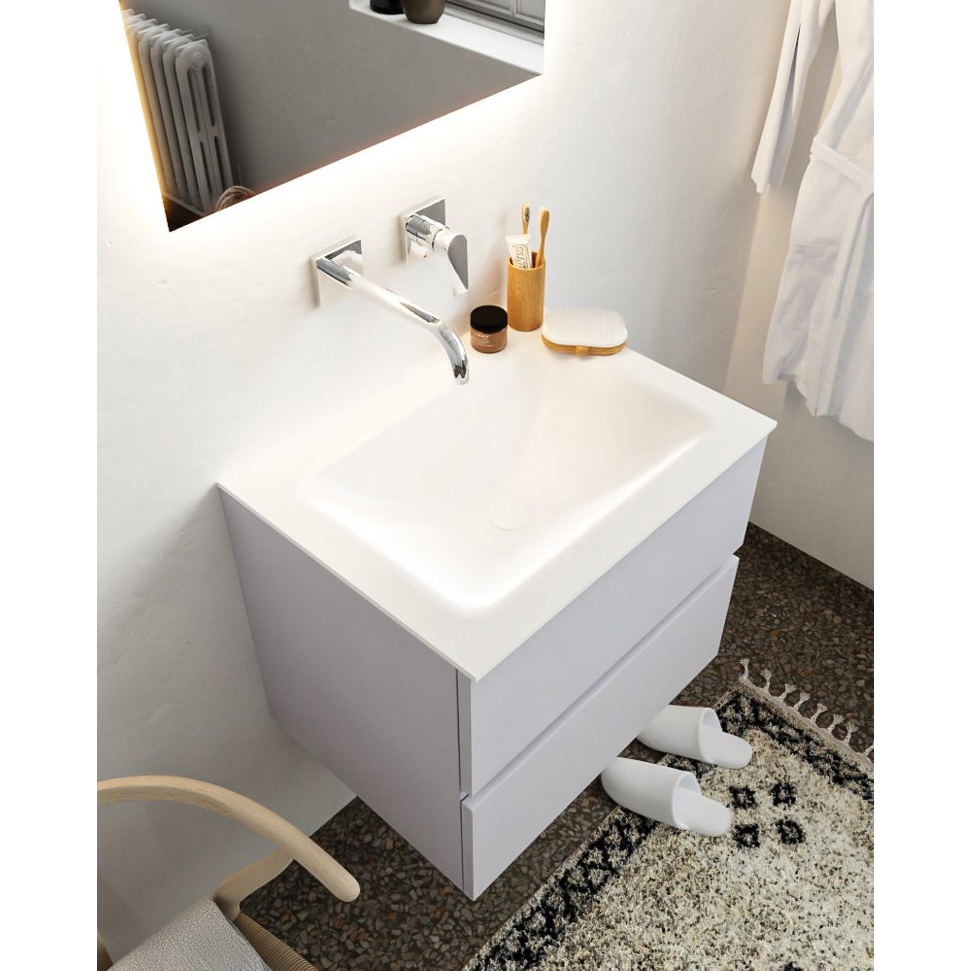 MONDIAZ VICA Ensemble de meuble salle de bain - 60cm - 2 tiroirs - lavabo Cloud milieu - 0 trou de robinet - solid surface cale