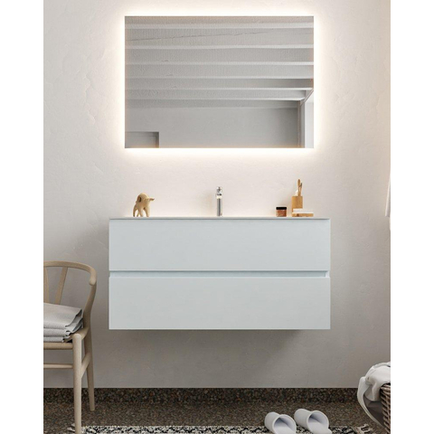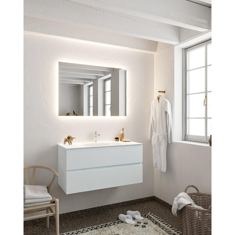 MONDIAZ VICA Ensemble de meuble - 100cm - 2 tiroirs - lavabo Cloud milieu - 1 trou de robinet - solid surface argile