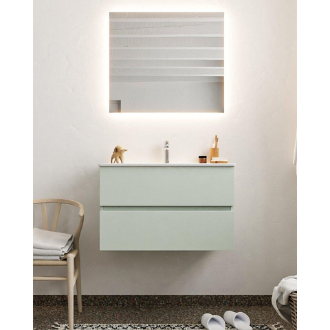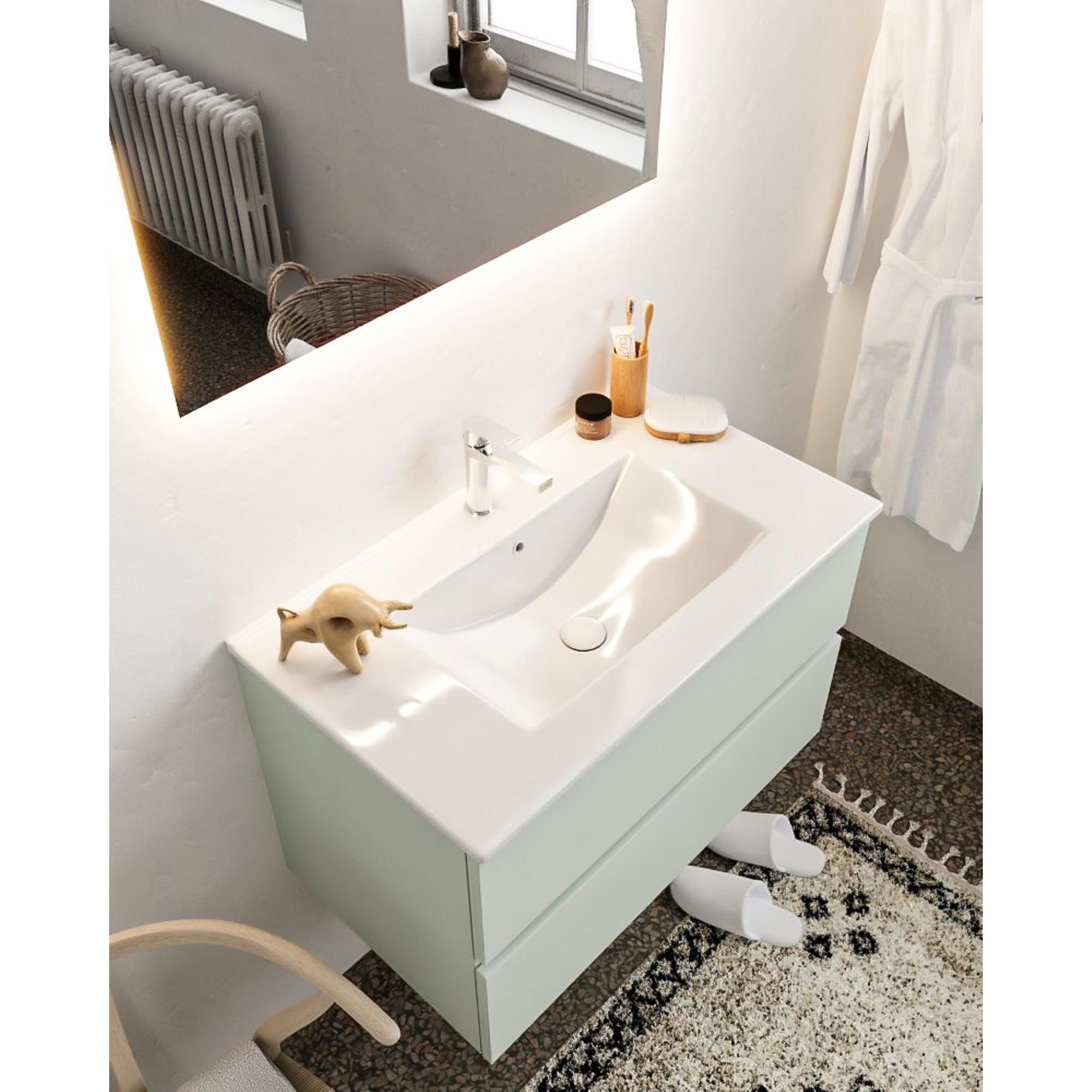 MONDIAZ VICA Ensemble de meuble - 80cm - 2 tiroirs - lavabo Denia milieu - 1 trou de robinet - solid surface gris