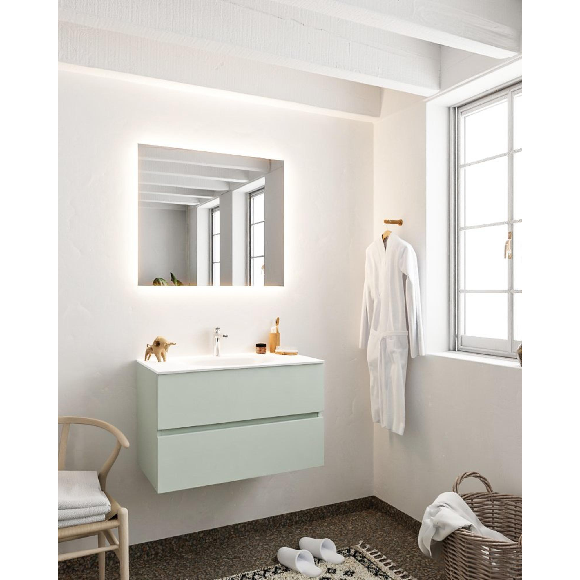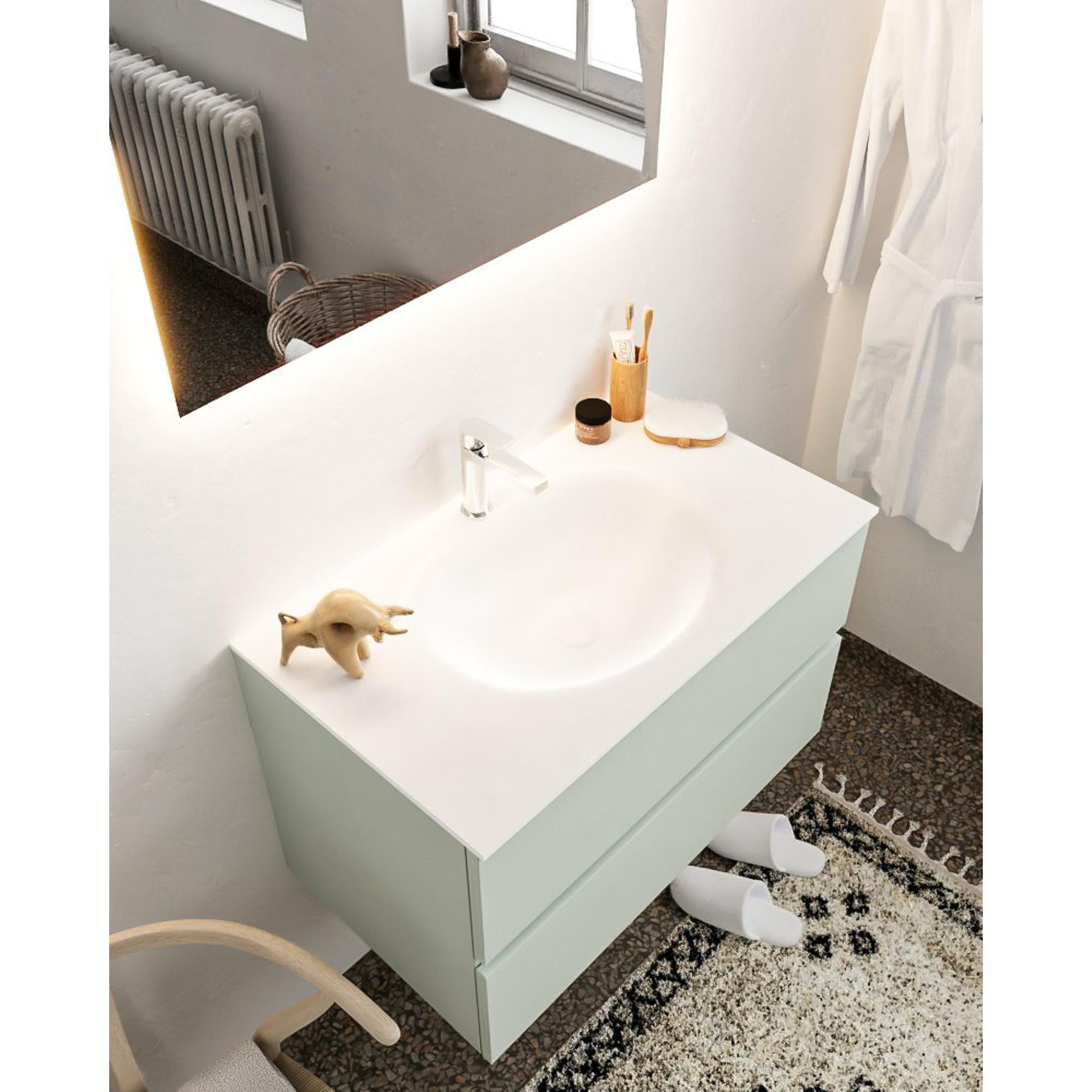 MONDIAZ VICA Ensemble de meuble salle de bain - 80cm - 2 tiroirs - lavabo Moon central - 1 trou de robinet - solid surface gris